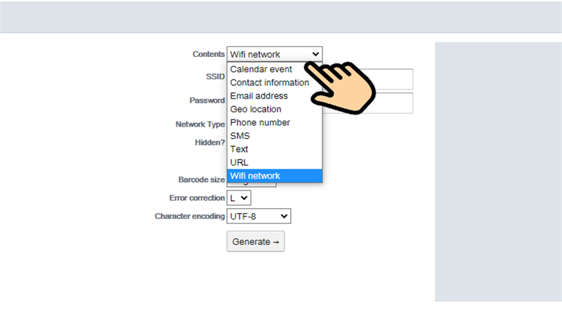 Bước 2: Chọn loại nội dung bạn muốn mã hóa, bao gồm: