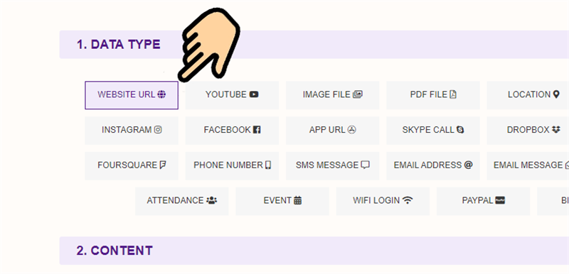 Bước 2: Trong mục “Contents”, chọn loại nội dung cần tạo mã QR như: