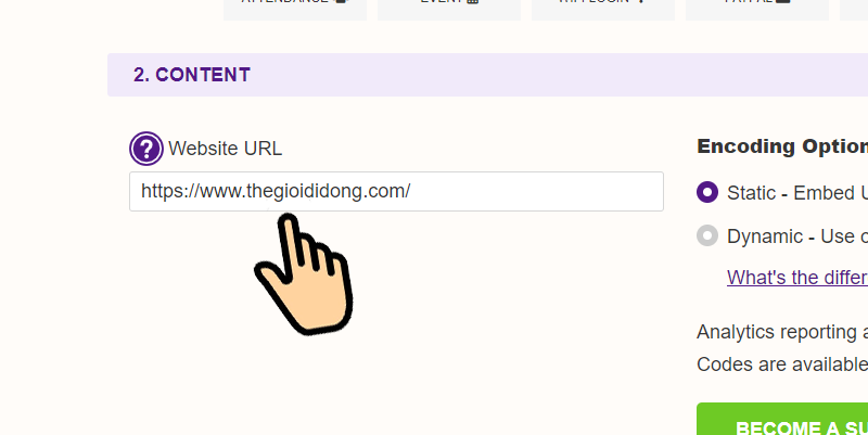 Bước 3: Nhập nội dung cần tạo mã QR vào trường “Content”.